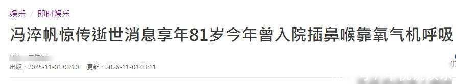 2025年11月1日,冯淬帆去世了,享年81岁,在许绍雄刚离开后不久,冯淬帆也跟着走了,这件事显得很凑巧,也让人感到难过,之前冯淬帆还在网上发帖悼念许绍雄,没想到几个月过去,就轮到别人来怀念冯淬帆了,今年五月时冯淬帆拍过一张住院的照片,他戴着氧气罩,人瘦得很明显,出院以后走路需要借助制氧机,身边总带着药,但他还是坚持对粉丝表达感谢。